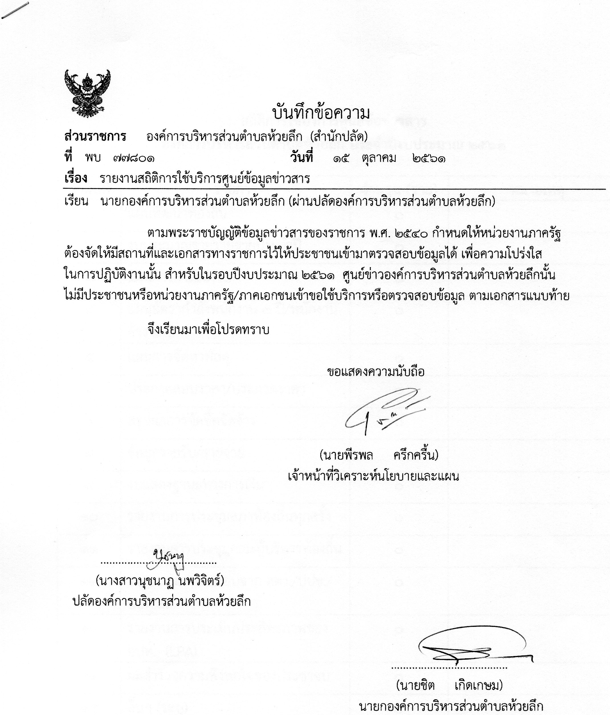 ประกาศองค์การบริหารส่วนตำบลห้วยลึก