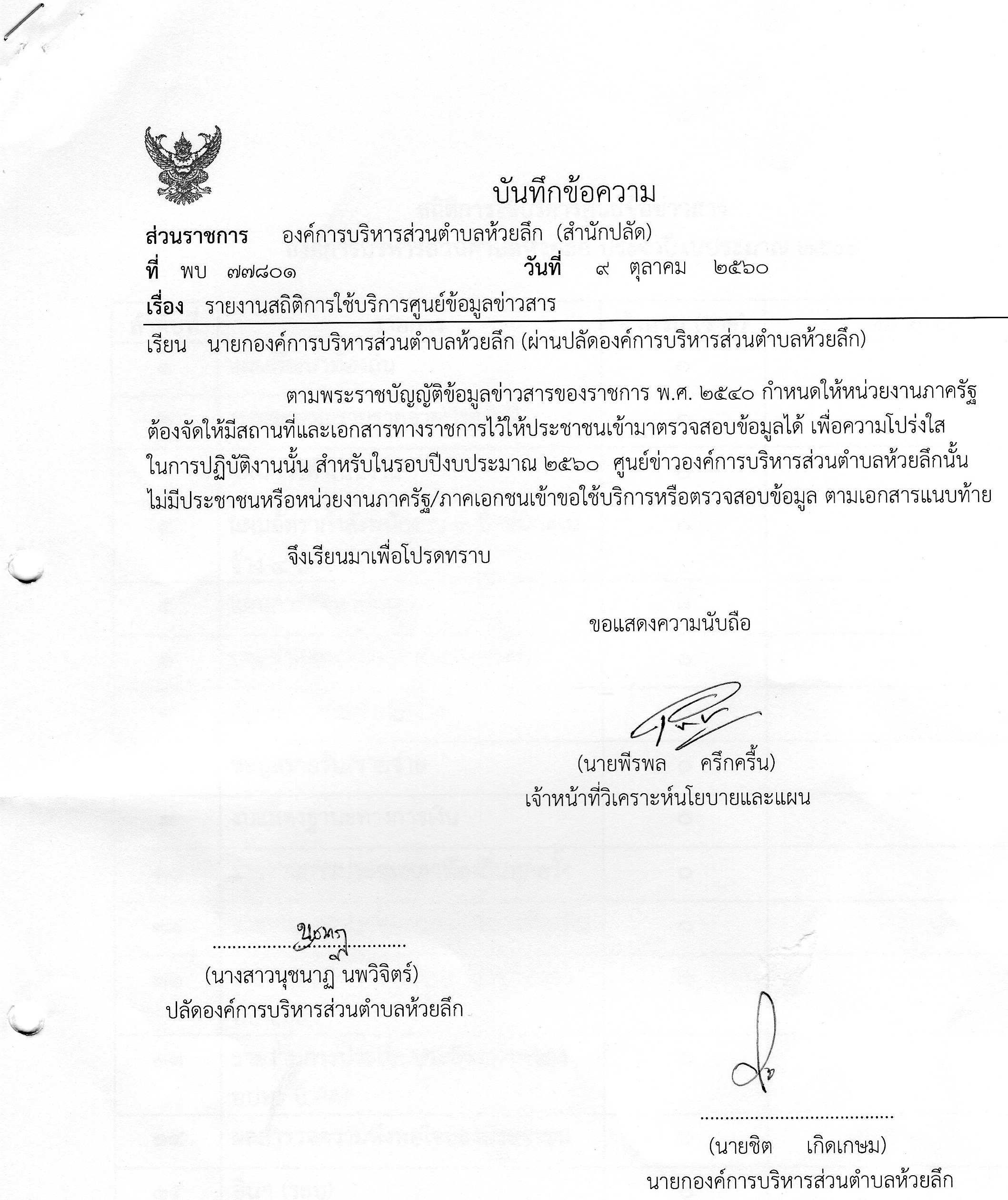 ประกาศองค์การบริหารส่วนตำบลห้วยลึก