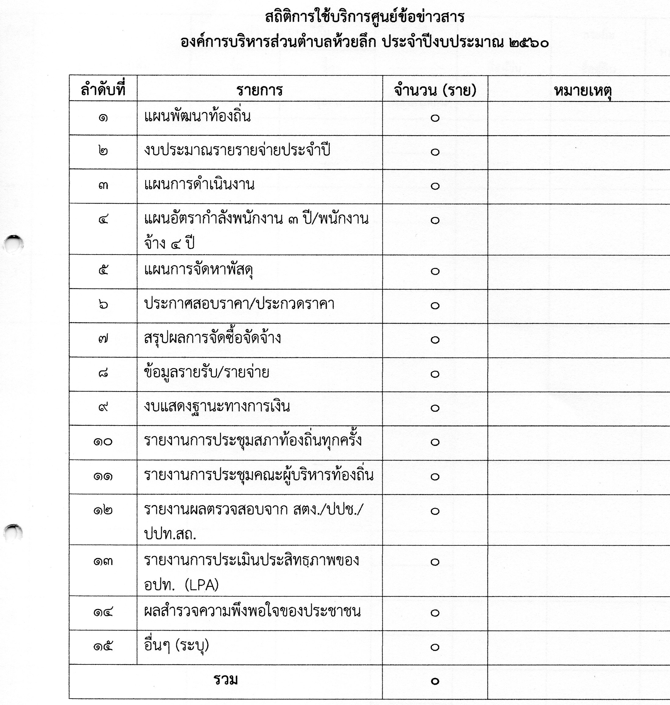สถิติการใช้บริการข้อมูลข่าวสารประจำปีงบประมาณ 2560